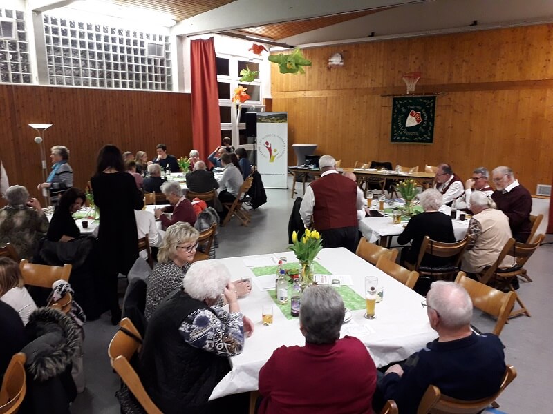 Eine erste Änderung gab es gleich zu Beginn, als die Anwesenden aus einer bunt gemischten Salatbar die Beilage zu ihrem Putenschnitzel selbst wählen konnten. Die Tische waren locker gruppiert in der Halle verteilt, sodass von Anfang an eine rege Unterhaltung stattfinden konnte.